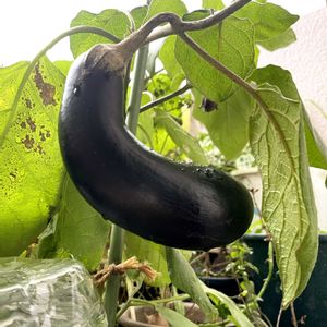 9/3水ナス🍆🍆🍆3兄弟の収穫 4/3にベランダのプランターに種まきしたもの😊 プランター種まき後5ヶ月!ですが、色合い、光沢、形、大きさ、味とも十分満足💪