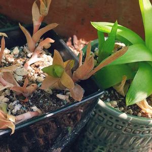 今日はもう1つ何かの日だったな🤔 忘れた💦💦・・・ふり🤣🤣🤣 ホントに忘れたら殴られる😱💦 🏷️子株の日 参加しま~す💖 モジャ子さんからぼんぼんさんへの🎁の おすそわけで去年3月にいただいた京の華✨ 増える増える🤭 で、外した子株を外に置いてたら日焼け してピンク(茶色❓️😅)になってたけど 最近やっと緑に戻ってきました💚 親株からはまた新しい子株ちゃんが 出てきました😁