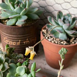 我が家で今年初開花のエケベリアは月影の宵✕クリスマスでした(๑•᎑•๑)💛 エケベリアのお花って、本当に可愛いですよね〜💕 この子はまだまだ小さめなので、花粉だけ取っておいてあとは切ろうと思います✄✨ この子、とにかく動きの激しい子で、花芽も割と早くから出てきたし、脇芽も所々から出て来てて、可愛い姿がどんどん変わっていってます😅 まぁー好きなように成長してください(๑¯∇¯๑)ハハハ