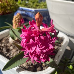 バルコニーのヒアシンスが、 3つともに花が上がりました🎉 朝からモチベーションアップ⤴️