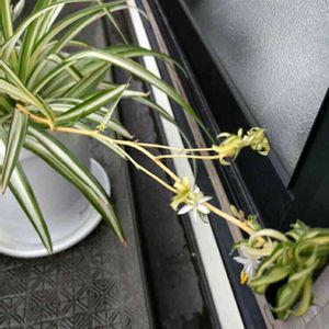 玄関先にあるオリヅルランの子株が花を咲かせました(^ω^)v オリヅルランはとてもたくましく生命力が強いので、いつもたくさん元気をもらっています☆