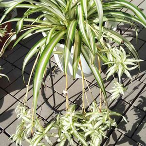 オリヅルラン🍃 毎年、よく咲いてくれるね、 本当は、3鉢に分けようと思ったけど、まあいいか!Σ(×_×;)!😫😁