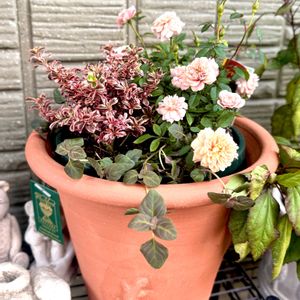 “寄せ植え” いつもお世話になっているAperireさんに、ミニバラモカさんが入荷したので、寄り道…🚗³₃ 最終的にモカさんは、おひとり様植えに変更予定だけど、今は寄せときます(*^^*) ミニバラ モカ リシマキア ミッドナイトサン コプロスマ