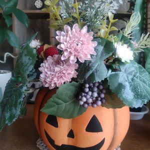 1️⃣ミニバラ2種♡良い香り☺️ 2️⃣玄関のハロウィン飾り🎃今日で見納めです😌