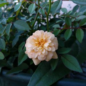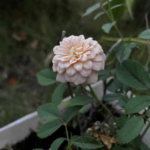 ミニバラ モカ🌹 ひっそり咲いてました 昨日の夕方の写真です 春の後にはほとんどの葉を虫に食べられたのに(ごめんよ〜💦)、小さな見かけによらずタフなミニバラです✨✨