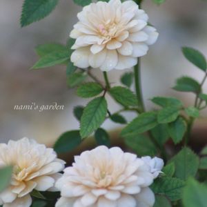 こんばんは(*^^*) 8月11日(月曜日) ① ミニバラ『モカ』 クリクリした可愛らしい薔薇 ② 『フィリスバイド』 元気いっぱいです ③ 『グリーンアイス』 ミニバラは暑さに強いかも? ④ ミニバラ『ベイビーマスケラード』 色変わりする薔薇 ⑤ 🏷ワンワン祭り 参加させていただきますね! 真ん中の薔薇は 『アンティークレース』 黄金虫の仕業が食べらちゃってます