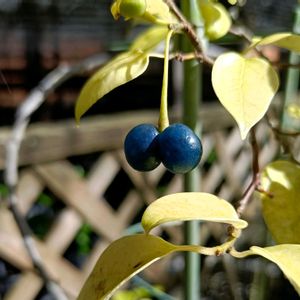 ★アオカズラ(青葛)★ アワブキ科の落葉蔓性植物 花期:3〜4月 果実はφ5mmほどの歪んだ球体。小房が2つあり、2つの実がくっついてヒョウタン形になることが多い。 花はφ5mmほどの小花、黄色の花弁5、雄蕊5、雌蕊1。 2025.11.3 筑波実験植物園(EN)📱