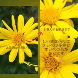 11/22㈯① 今日のお花 ユリオプスデージー 1️⃣花の中心の円盤状の部分には 小さな花が開きます この小さな花のひとつひとつに メシベである花柱と、 オシベがあり、葯がついているので、沢山受粉出来ます 2️⃣葉や茎には細かい毛があり、 シルバーリーフに見えます 蕾の萼にも細かい毛がいっぱいです 3️⃣4️⃣10/14に写したユリオプスデージーです 5️⃣まだ蕾が沢山有りました✨ 6月にも見た覚えが有るのですが…写真が見当たりません😂 5月から11月が花期とされていますが、3月や12月にも見られます😉