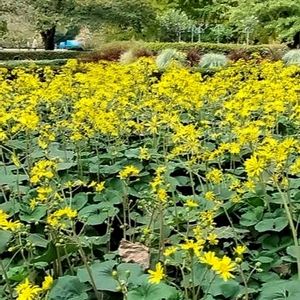 ★ヤブタバコ(藪煙草)★ キク科の越年草 花期:9~10月 山地の沢沿いの林のふちや道端に生える。茎は太く、高さ1m前後になると、数本の横枝を放射状にのばす。根生葉と下部につく葉は長さ約25~30cm、幅約10~15cmの長い楕円形で薄く、両面に短い毛が生える。上につく葉ほど小さい。花は直径1cmの頭花で、葉の脇に一列に並ぶように下向きに咲く。色は黄色、中心部に筒状花が集まり、まわりに雌花がつく。 整列して咲く姿…この子、ヤブタバコですよね? でもお花が、おちょぼ口じゃないぞ🤔 ※過去の投稿 2021.9 2025.11.29 都立水元公園にて📷