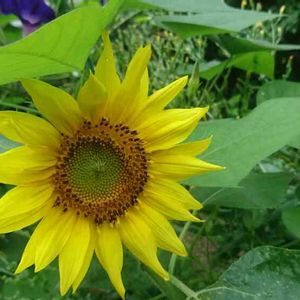 sunflower 🌻 植えた記憶はない インコ🐦の餌とオカメインコ🐦の餌を間違って買ったので 庭のすずめさん🐦に まいた種から 咲いたみたいね😊🎵