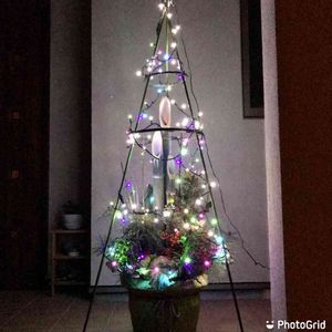 昼間に作った門松🎍ツリー、点灯💡してみた✨。 お気に入りだったXmasツリー🎄をもっと楽しみたい、でもやっぱり新年に向け作り替えたい、今年も両方の欲求を満たすものが出来たかな👍。 年明け1月いっぱいは夜な夜な電飾✨を楽しむ予定😊。