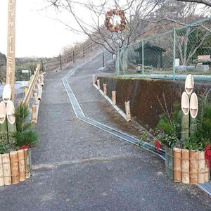 こんばんわ😃 みなさんお久しぶりです✨ スマホのカメラ機能が壊れてしばらくお休みしていました😓 久しぶりの投稿です😊 今日は寒い中、部落の 神社?に門松🎍を建ててきました😊 今年はイルミネーションもしていて夜はとてもキラキラしています✨門松の後ろに見えるのは巨大な竹灯篭です✨もちろん手作り😄 県道沿いなのでみなさんに見てもらい喜んでもらっています✨ お近くの人はぜひどうぞ~😊