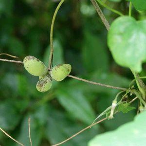 シロバナハンショウヅル(白花半鐘蔓) 若々しい痩果です。タネは未だ浅緑色、 これからじっくり時間をかけて12月〜1月に茶色く熟して旅立つのでしょうか 今年は花を見る事が出来ず 来年はしっかり会いましょう😊