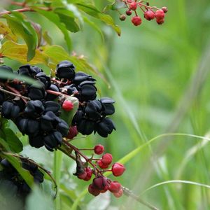 ドクウツギ(毒空木)の実 ドクウツギ科ドクウツギ属 落葉低木 日本固有種 この個体は2m前後でした。 トリカブト、ドクゼリと並び日本三大有毒植物、枝ぶりがウツギに似る事からの命名。 別名の一つにイチロベエコロシ(市郎兵衛殺し) 雌雄同株、茎葉全株有毒。果実は猛毒(劇毒)果実は赤から黒紫色に。 花期は4〜6月、ネットでもGSの投稿でも花は見つけられませんでした。黄緑色の花らしい。来年は是非花を見ましょう!