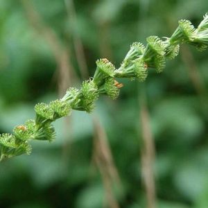 オニドコロ(鬼野老) ヤマノイモ属の中では一番多い 雌雄異株 雄花は直立して咲き雌花は下垂して咲く。 既に立派な実を持つもの、花の下に小さな子房をつけたもの、様々。5枚目は雄花かな?! 雌花は6枚の花被片の中心に3裂した柱頭があり、、退化した雄花があるはず。いつものようにルーペを持ち歩きながら、観察するに思い至らず… 昨日は久しぶりの涼しい一日。 雨予報で迷いながら傘持参で、久しぶりに観察の森へ出かけた。 急ぎ足の短時間散策、帰りの乗り物では降り出した、ラッキーでした。