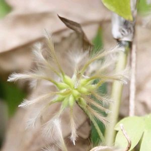 シロバナハンショウヅル(白花半鐘蔓)痩果 キンポウゲ科センニンソウ属落葉蔓性半低木 未だ若い痩果です。 これから冬まで変貌を遂げます。 花も葉も実も全て大好きです♪ 長い葉柄の1回3出複葉