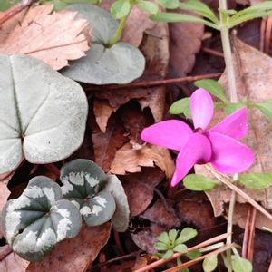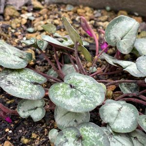 原種 シクラメン・コウム 無事、葉っぱ が 出てきました! シルバーリーフ✨が 美しい〜💕🎶