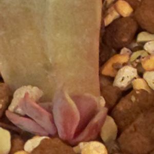 「パープルパールの葉挿し」 1/2 今んとこ 知らんあいだに株元でこんな状態の葉挿しっ子がいてました。 葉っぱも 根っこも 芽も むらさき~✴ きれい~✴ 室内に入れました。😄
