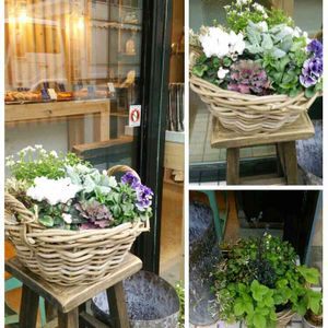 *いつものパン屋さん* 店の人に聞いたら、季節ごとに花を飾るのは、マスターのお母様なんですって! いつも楽しみにしてますとお伝えくださいって思わず口走りました(笑) 店先に花があると癒されますね♪