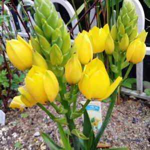 今朝の庭に咲く オーニソガラム 頭でっかちです😄