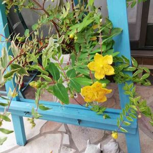 ヒペリカムトリカラー💛 ユーフォルビアゴールデンレインボーとの寄せ植え そろそろ植え替えしないと、根が大変な事になっていると思いつつ、そのままです(ಠ_ಠ)━☆゚.*・。゚