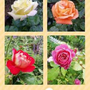 雨の雫を纏った今朝の薔薇達 花びらが傷んでいますが、かろうじて綺麗な薔薇を集めました🌹🌹☔🌹🌹