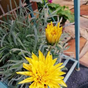 おはようございます。 今日も大雨の予報 鉢の中にキノコがニョキニョキ 何時も湿っているからでしょう 八重咲きガザニア💛💛
