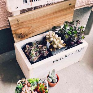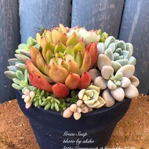 今日は健康診断のため、いつもより早い出勤。 今日はモノトーンカラーの寄せ植え😃 秋口に最初に寄せたときはカリシアが入っていて、ピンクがいい差し色になってたんですが、爆発的に増えて寄せ植えを飲み込んだあと、あっという間に消えてなくなりました🤣 カリシア、とてもかわいいけど、冬にめちゃくちゃ弱いし、しかもお水好きすぎて寄せ植えには向かないのかも😥 私の管理がへたっぴなだけでしょうか?( ω-、) カリシアいなくなったので手直ししました🤗 新たにy~k苗のクロマ、エレン、葉挿しのチビデビーを❤️ あと、放置してたほろ酔い美人に入ってもらいました❗ もとからいたリラシナちゃんが超美人(艸ε≦●)♪ 渋い色味に仕上がり、満足です🙌