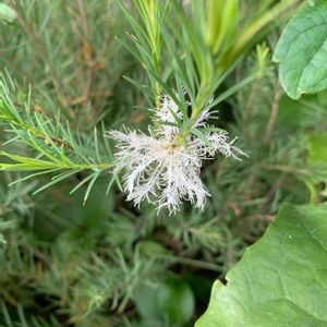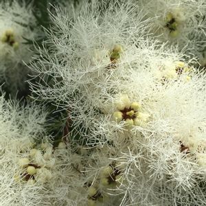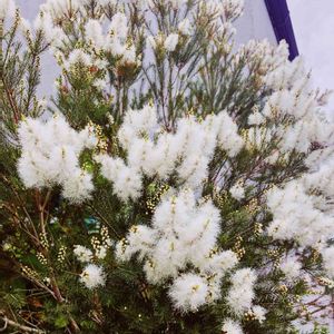 メラレウカ・メディカルティーツリー🌳❄️ 毎年、隣のブラシの木が咲き終わった頃から咲き出します。細葉で繊細な葉に綿のような花✨✨癒されます😌