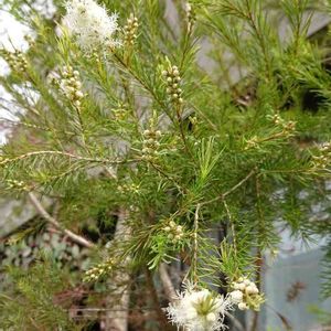 メディカルティーツリー満開です❗ ここ1,2年咲かなかったので嬉しい\(^o^)/ 左下辺りは、去年の台風でやられちゃったんです… 頑張って上に伸びてくれました😃