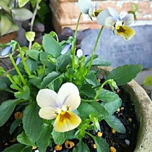 今日は2回目の投稿です🎵 ゲブラさんのオリジナルビオラ ミステリアスシリーズの『マリア』 小輪でとっても淡い色をしています 何年か前にも育てましたが、久々にネット注文してみました 大好きなビオラの1つです(o^-^o) 夕方から雨が降りだして、今夜は雷雨になるみたいなので傷むのを気にして玄関や倉庫に避難してます