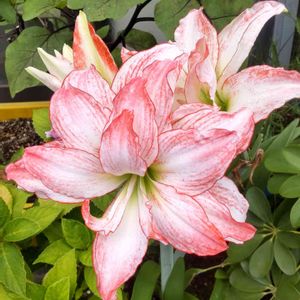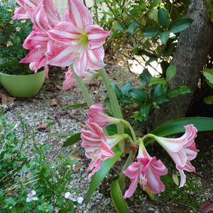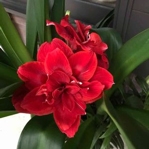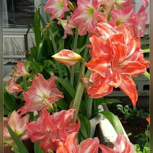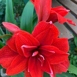 こんな豪華な八重のアマリリスもあるんですね‼️ 花友さんの家に、弘法菜の種をあげようと行くと 玄関前でとても目立って咲いていました❣️