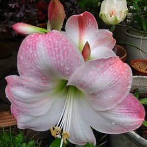 何度も続けてご免なさい😵 お花の綺麗なうちにっと思って、私も忘れ無いうちにっと思って(笑) アマリリスは 幾つも咲いてくれるので見応え有ります。 白、ピンク、赤色が、 二鉢づつ有ります。 咲いている間は 良い場所に鉢を移動して眺めていたいので、 大変です。😞💦