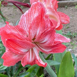 2020,6,5 8:17撮影 隣街の花壇 八重咲きの大輪、アマリリス レディジェーン 一重咲きで見られる雌蕊が見えない