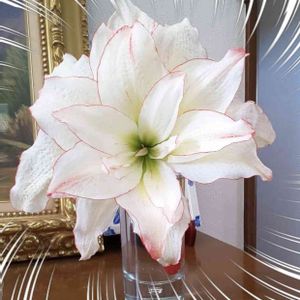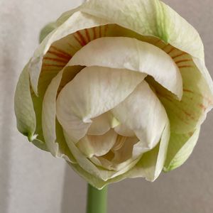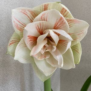 白❣️八重咲きのアマリリスちゃんが咲き初めました💖 後ろに蕾が3つ隠れています💕