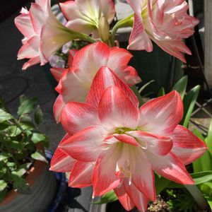 今❣️咲いているアマリリスちゃんが玄関前に勢ぞろいです💖🧡❤️💚