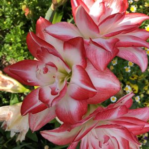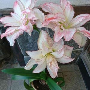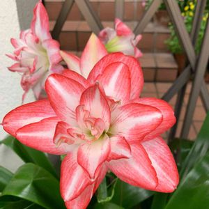 白に赤い縁取りの八重咲きの💮アマリリス💮のお花がとても豪華に咲いていました😍💟