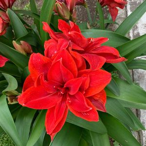 毎年咲いてる八重咲きアマリリス。今年も綺麗に咲きました。株分けした株たちも咲いてるかなぁ