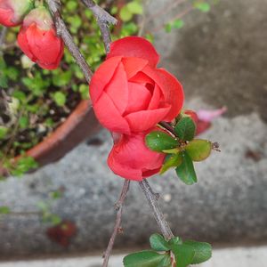 ベランダの植物たち 木瓜の花が終わり柔らかそうな 葉っぱに新芽が赤く可愛らしい 4月18日撮影