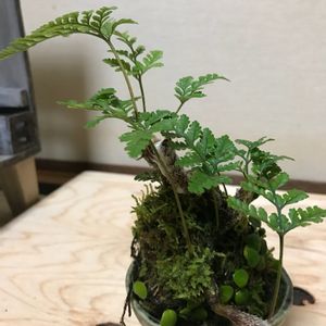 トキワシノブとマメヅタの苔玉 冬でも緑が鮮やかです。 お気に入りのひとつです