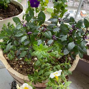 おはようございます☀ 久しぶりのお日さま日和です。 零れ種から春に芽が出ていたオニキスレッドが花を咲かせてくれました❣️ やがて赤い実になってくれそうです😊 夏の間、おやすみしていたペチュニアやサフィニアもまた咲いてくれました❣️