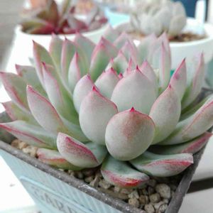 ふるさと納税エケベリア12個 その⑤桃太郎🎵 いろいろ吹っ切れて、多肉事がはかどります!本日3投目です💦💦 桃太郎だから男の子?かもだけど、桃色ガーリーなリメ鉢にINしました✨ ツンツンしてるがピンクで可愛い❤