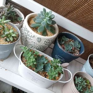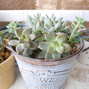 寄植え作りは余計な事は考えず楽しい時間💕 実は新しい子を置く場所がなくなっちゃっての寄植え。 暖かくなってモリモリ増殖中🌱🌱🌱