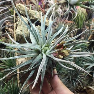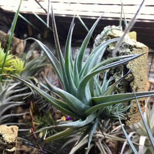 チランジア マウリアナ Tillandsia mauryana 咲き終わったマウリアナから子株。 親株の葉は溶岩にまとわりつくように密着し始めました。自然界では岩に活着してるようなので、こんな姿で過ごしてるんですかね〜w 標高の高い乾燥した岩場で生きる! この子の質感が堪らんですね(๑˃̵ᴗ˂̵)w