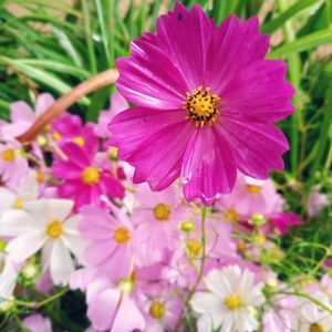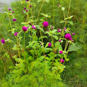 去年の種からの千日紅。今年は なぜかしら 背高ノッポさん。 1メートル程。 陽気のせい? 水のやり過ぎ? 土のせい? 摘芯してないからかな〜? 離れた場所にある花も同じ現象。 コスモスと背比べしてる。✨