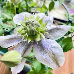 こんばんは♪ 今日は休みなのに朝早くから目が覚めてしまったので朝ウォーキングしてのんびり朝昼食とっていたら ずっと前からクレマチスならこれが欲しいなーと思ってた 水面の妖精が入荷したとの情報✨ あっ!これは買いに行かなきゃ!!と車を片道40分走らせて買ってきました〜😍 さあ!これからクレマチス育てるのにお勉強しないとね〜🌼 主張し過ぎない色味のこの子本当綺麗✨ファーストクレマチスだね☺️