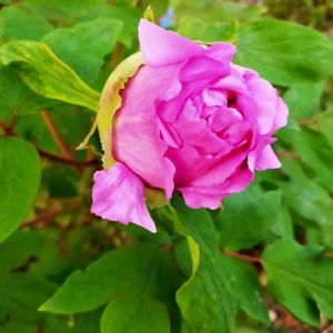 ボタン ' 花競 ' 最高気温28°C 初夏を通り越して真夏並みの暑さでした😅 昨日まで固い蕾でしたが、今日の気温で一気に開花しました😊✨