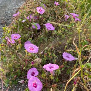 ホシアサガオ 星朝顔 ヒルガオ科 サツマイモ属 おはようございます いつもは夕方の散歩ですが、天気が怪しいので、朝の内に散歩💗🎶 夕方にはしおれてます😰💗 葉がかなり小さいです💚 まあみさんにひだまりさんのホシアサガオに似ていますというコメントをいただき見てみますと全体に毛が無く、葉がとても小さくて、花はマメアサガオより大きいところがとても似てましたので、タグをホシアサガオと訂正します💗