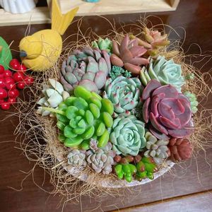 昨日の寄せ植え完成ショット。 銘月が飛び出してるのはご愛嬌と言うことで😅 夜の室内撮影は暗い💦 やっぱり多肉は外とお日様が似合うね😍!