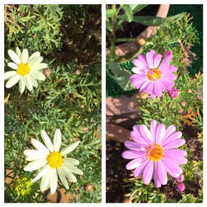 おはようございます😃 マーガレットが咲き始めました❣️ 右→三年目 ←左二年目 茎は木質化して小さな木のようです🌳 今年も咲いてくれてありがとう💕